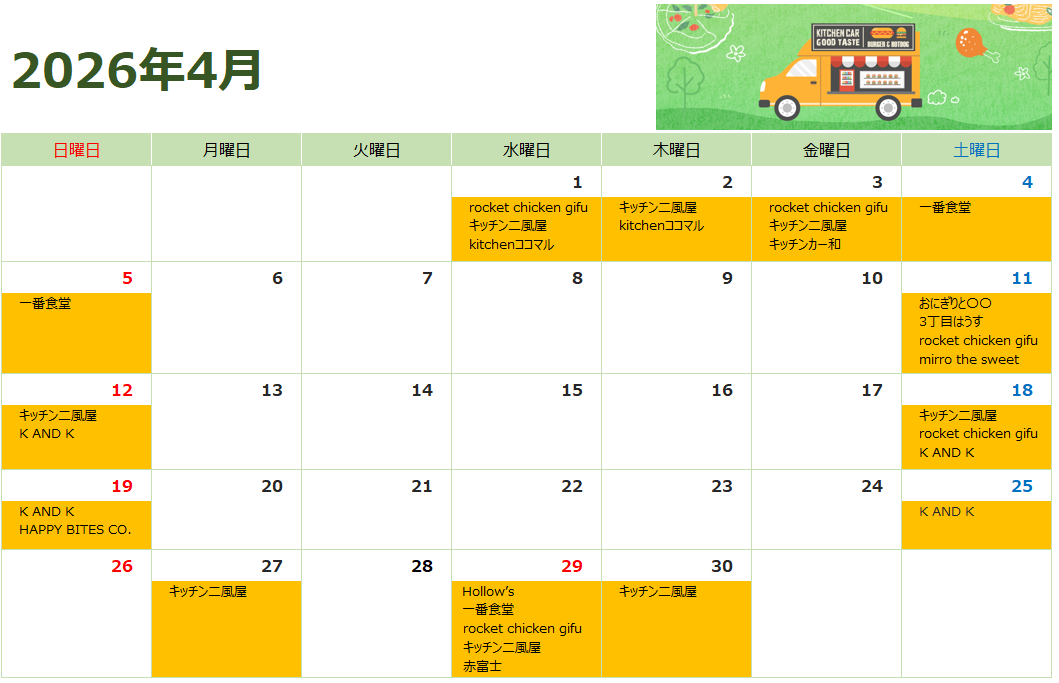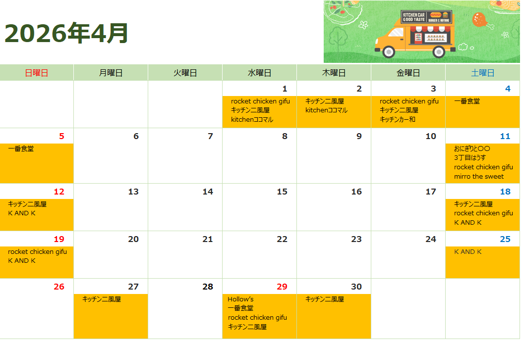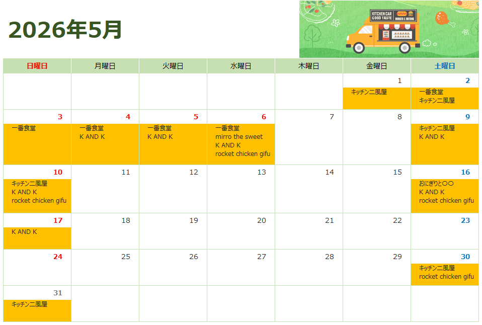 キッチンカー出店情報