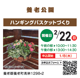 2/22開催 花とみどりのワクワクワークショップ 「ハンギングバスケットづくり」