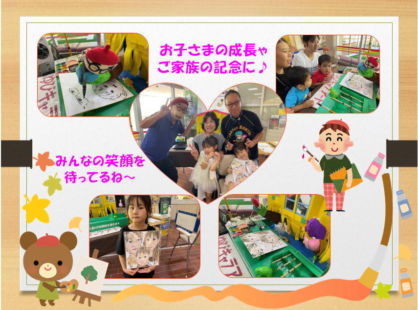 養老公園の思い出や、お子さまのご成長・ご家族様の記念に似顔絵を描いてもらってはいかがですか?お一人描き500円、約15分程のお時間となります。