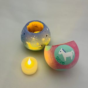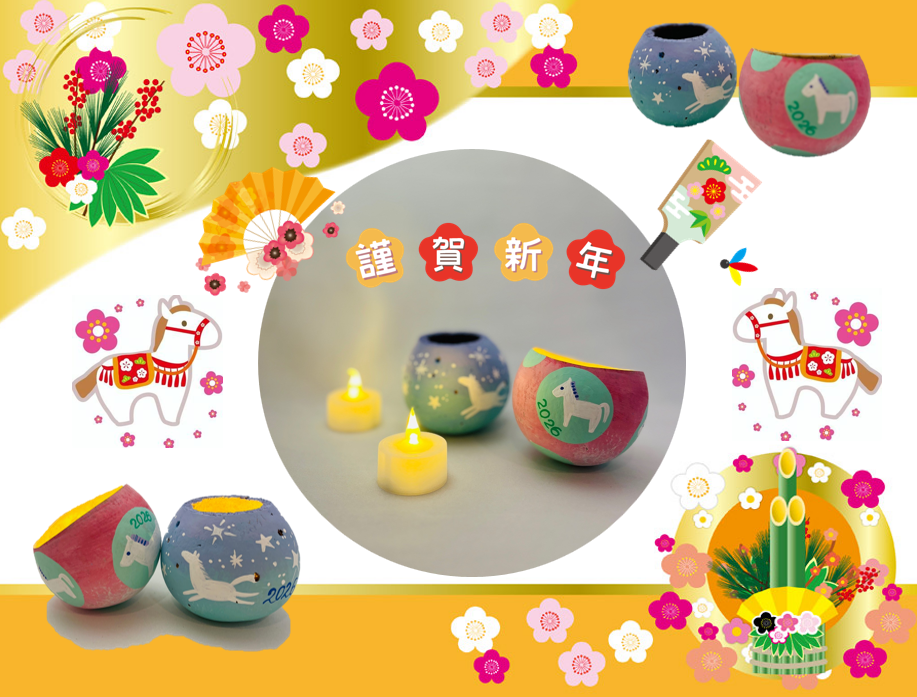 古来から縁起物として知られる天然ひょうたん素材のカップに、かわいいホワイトホース(白馬)を描いて、光の灯るキャンドルカップを作ります♪