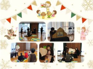 絵本の読み聞かせや、手遊びなどを上演いたします。