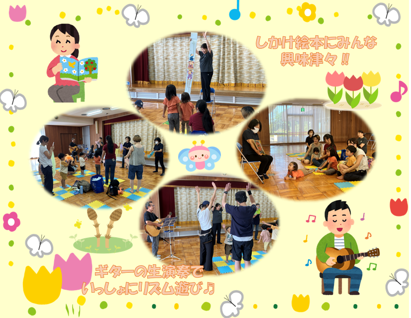 絵本の読み聞かせと、ギターの生演奏でリトミック遊び♬