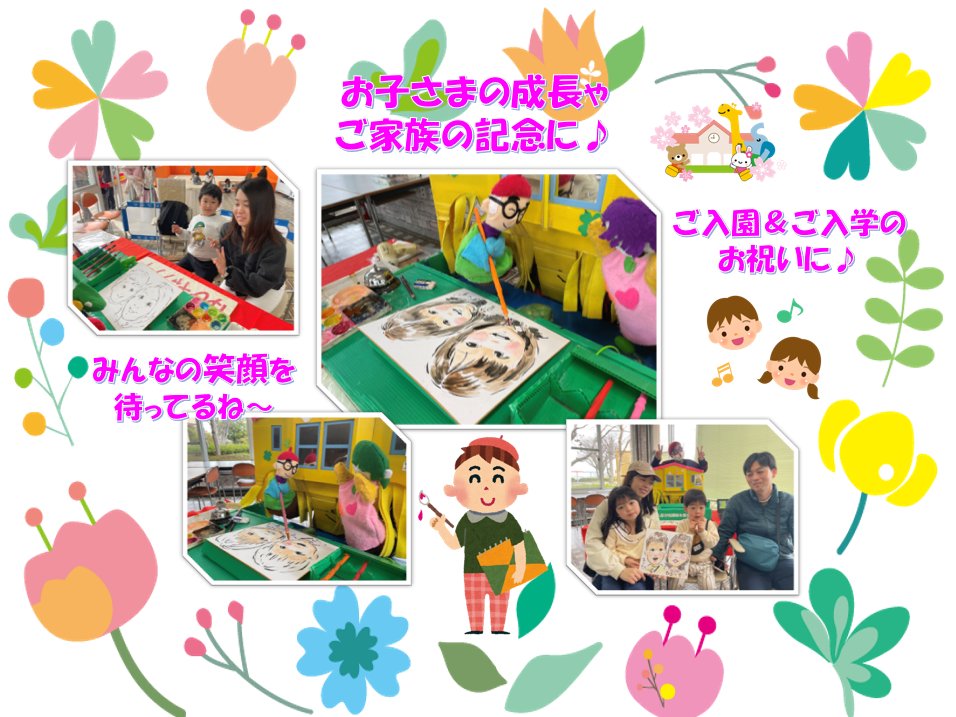 養老公園の思い出や、お子さまのご成長・ご家族様の記念に似顔絵を描いてもらってはいかがですか?お一人描き500円、約15分程のお時間となります。
